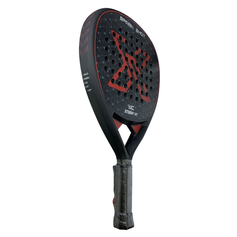 STORM V1tilbyder en perfekt blanding af kraft og kontrol til avancerede spillere, der ønsker at accelerere spillet. Træffladen kombinerer den bedste ydeevne af kulfiber og glasfiber, dens ansigter har ru Grit Spin, som forbedrer spingenerering ved hvert skud. Det inkluderer også Ungrade Butt Cap og Neopren Strap, hvilket gør det mere sikkert og fuldt tilpasseligt.